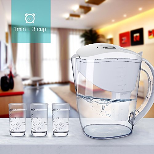 ✔MORE EFFICIENT FILTER-- Pitcher body is 3L while with the reservoir is 2.25L, which means, with Flow Control Tech (0.7L/Min), you can get 10 cup of pure water in 3 min (Equal to about 6 Tins of Coke)