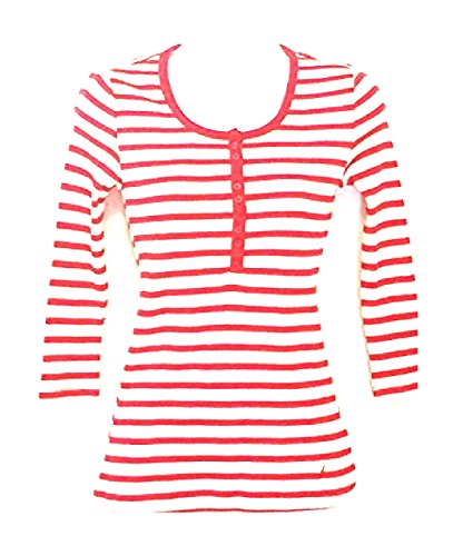 NAUTICA RED JESTER STRIPED SLEEPWEAR 3/4 LENGTH SLEEVE SHIRT, X-SMALL