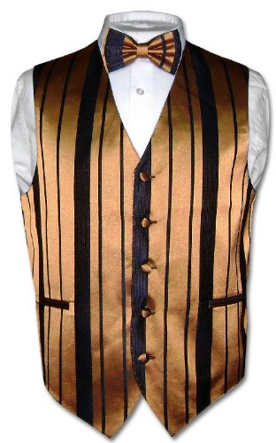 - Title : Men's Dress Vest BOWTIE Gold & Black Woven Striped BOW TIE Design Set
