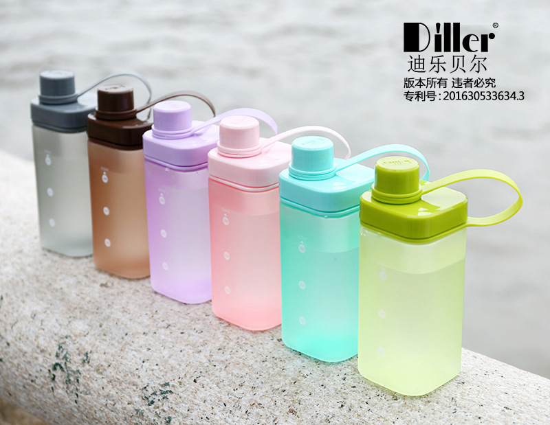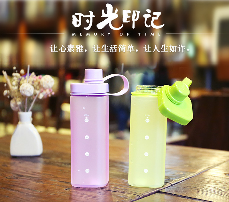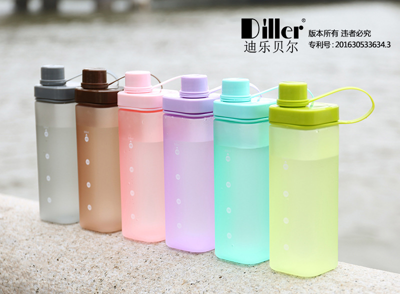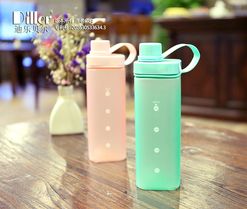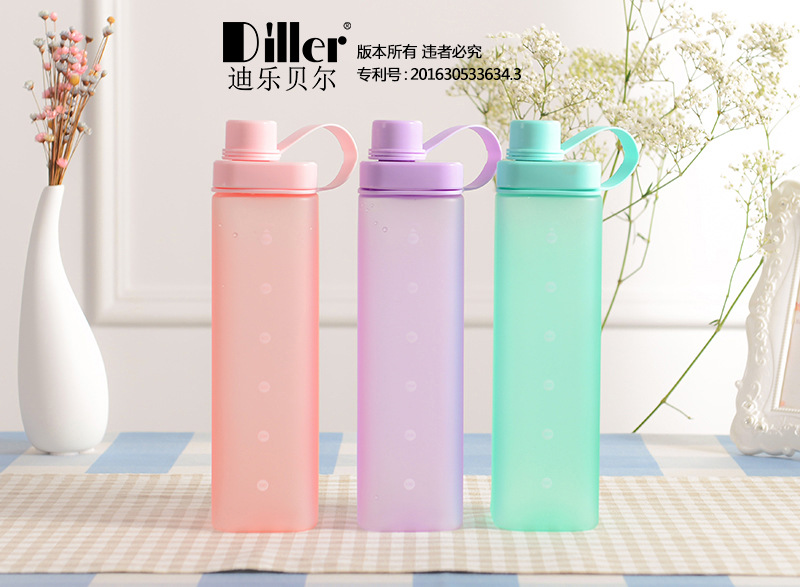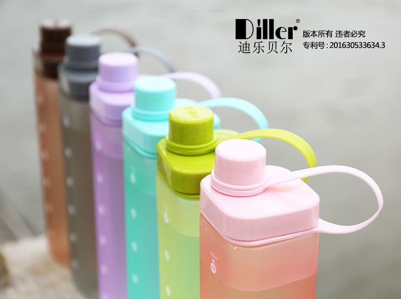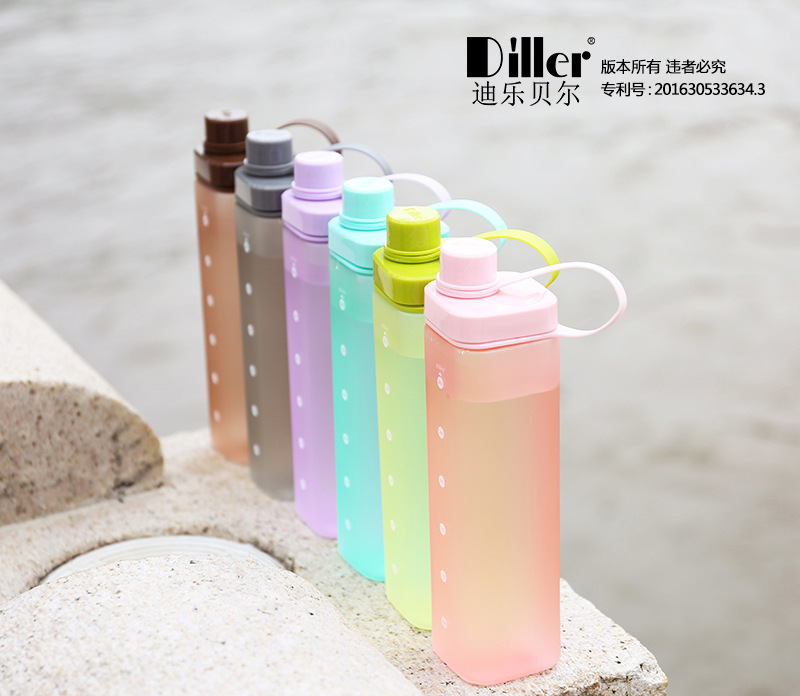 方形磨砂带提绳运动水壶情侣款便携塑料杯大容量随手杯子