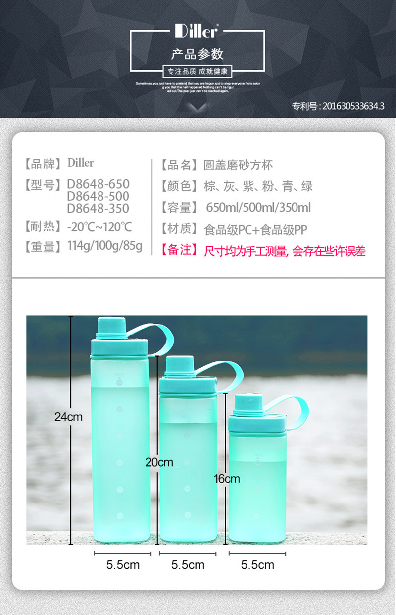 产品名称:Diller迪乐贝尔圆盖小口磨砂塑料杯