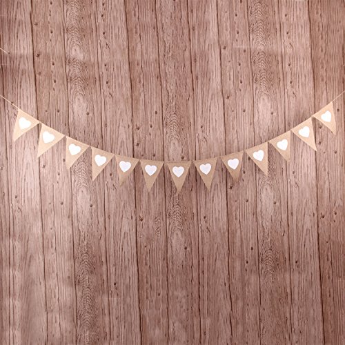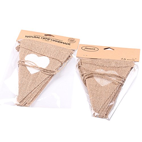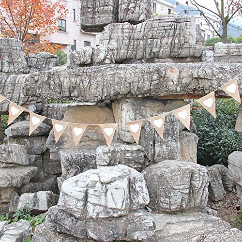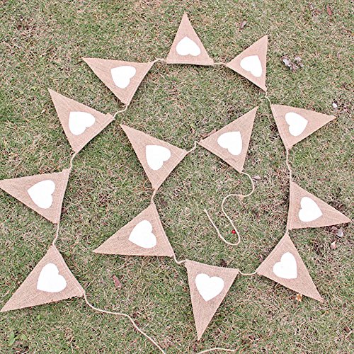 -. Feature : Color:white,brown / Material: Burlap,Pure handmade / Total length: 119 inches long / Each flag:(L*H)4.88*6.24 inches / Perfect for wedding party decoration.