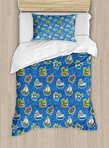 (Ambesonne)/Bedding Bath/Bedding/DIRECT FROM USA/Kids Duvet Cover Set by Ambesonne, Cute Toys Pattern Train Sail Boat Airplane Children Baby Pla...