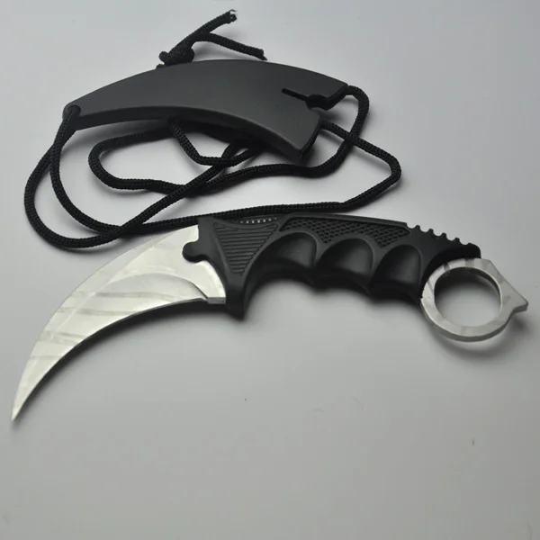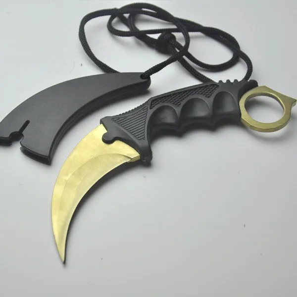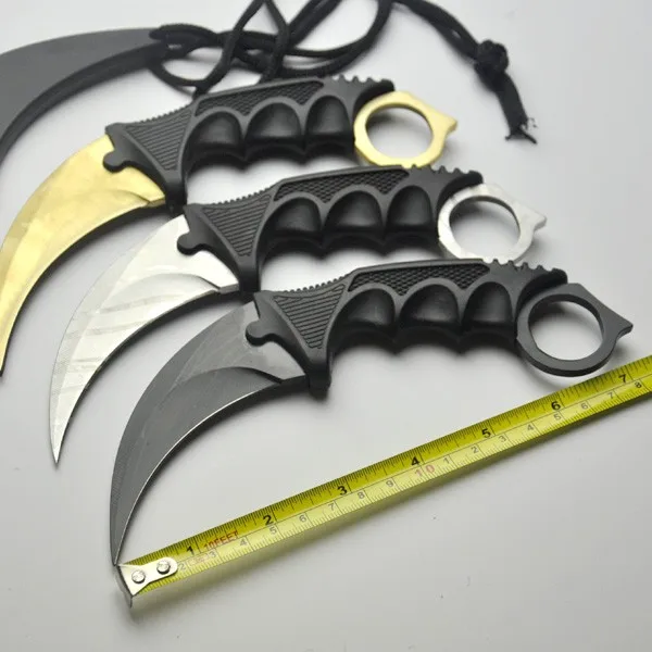 유형: 고정 블레이드 나이프 색상: 골드, 실버, 블랙 전체 길이: 18.2 센치메터 블레이드 길이: 9 센치메터 핸들 길이: 12 센치메터 블레이드 폭: 3 센치메터 핸들 폭: 4 센치메터 블레이드 두께: 0.38 센치메터 핸들 두께: 1.6 센치메터 블레이드 재질: 스테인레스 스틸 핸들 재질: 플라스틱 칼 무게: 112 그램 총중량: 122 그램 칼집: 플라스틱 + 로프