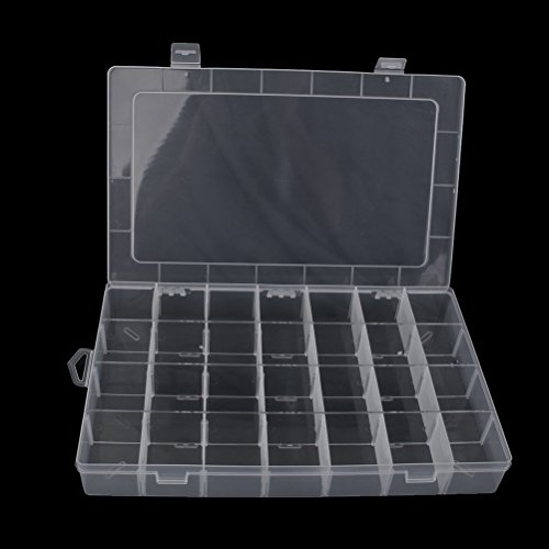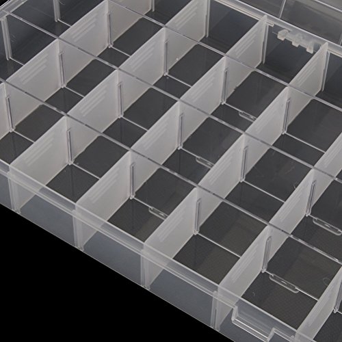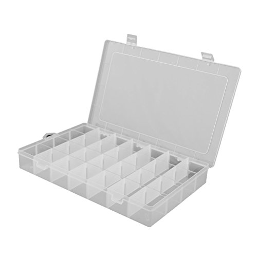 OULII 28-Grid Plastic Jewelry Box Organizer Storage Container Case with Removable Dividers (Transparent)
