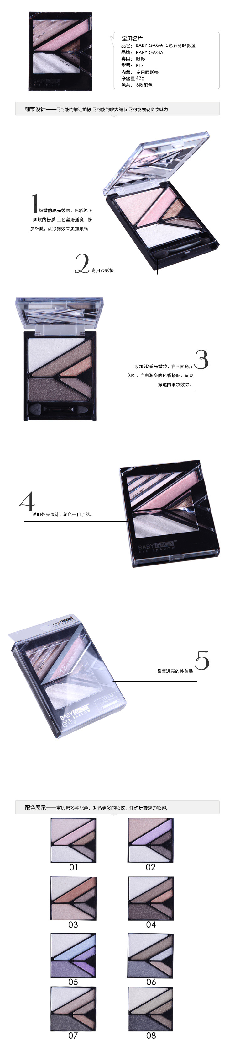 每位女性的容颜与个性都各不相同、BABY GAGA以此概念为出发点、通过能够变换各种色彩与个性的配色,来展现女性的自信和美丽。