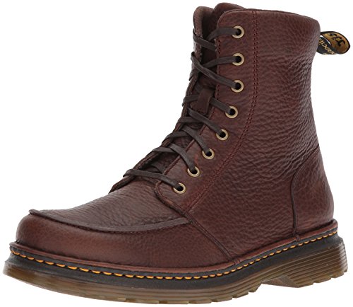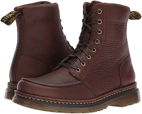 -. Binding : Apparel -. Brand : Dr. Martens -. Department : unisex-adult -. Feature : Made with Grizzly (bovine) leather / Features AirWair comfort insole / Corner Stitch construction for long lasting durability / Iconic Dr. Martens air cushioned sole / 8-eye lacing system, padded collar and moc-toe -. Label : Dr. Martens -. Manufacturer : Dr. Martens -. Model : R23048201 -. PackageQuantity : 1 -. ProductGroup : Shoes -. ProductTypeName : BOOT -. Publisher : Dr. Martens -. Studio : Dr. Martens -. Title : Dr. Martens lombardo Dark Brown Fashion Boot