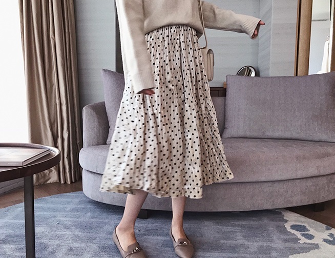 プリーツ仕様で動くたびにふんわりとしたシルエットが生まれる、カジュアルフェミニンな一枚となっております☆