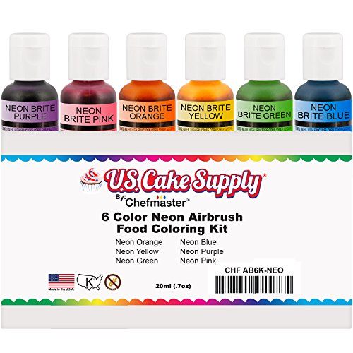 US Cake Supply by Chefmaster Airbrush Cake Neon Color Set - The 6 Most Popular Neon Colors in 0.7 fl. oz. (20ml) Bottles