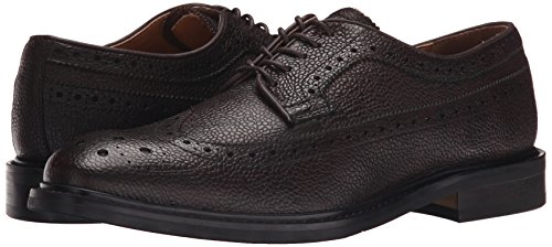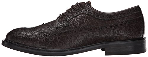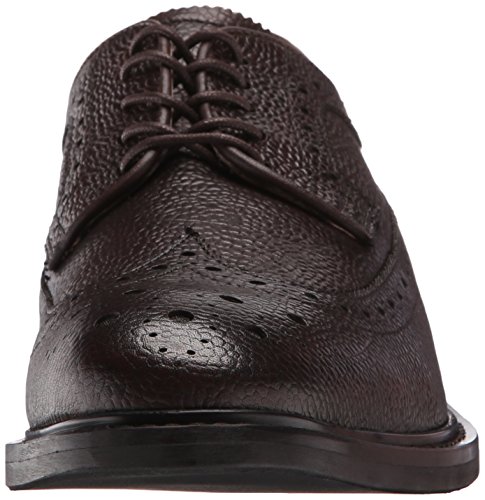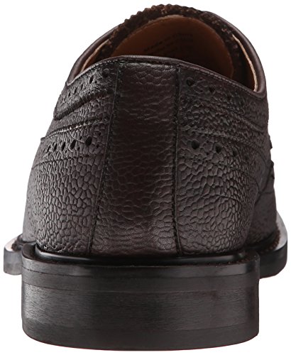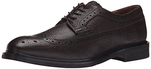 Wingtip oxford featuring pebbled-leather upper with medallion toe, pinking, and brogue perforations at seams