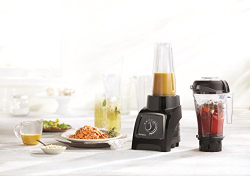 With the introduction of the S50, Vitamix redefines personal blending, again. In addition to the features found on the S30, like Variable Speed Control, Pulse, easy countertop storage and two container sizes, the S50 offers two pre-programmed settings to take the guesswork out of blending. These programs are specially formatted to deliver optimal processing times for Smoothies and Power Blends. Designed to automatically shut off when the selected cycle has completed, the S50 makes it easier than ever to achieve your perfect blend. The S50 offers the ease and convenience of two pre-programmed settings in a personal blending size, for high-performance blending that fits on your countertop. Two container sizes - a 20 ounce that becomes an instant travel cup with flip top lid and a 40 ounce for small batches of soups, sauces, frozen desserts, and more. The containers, blade base, lids, and seals are all top rack dishwasher-safe, making clean-up quick and easy. The safety interlocking system ensures that if the container is lifted or rocked from the blender base while in use, the motor will automatically shut off for your safety.Feature