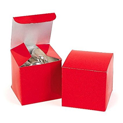 Studio : Fun Express Publisher : Fun Express Binding : Kitchen Product Description Mini Red Gift Boxes. Fill with little surprises! Decorate for your event with favor boxes that match your party theme. These red gift boxes are the ideal size for placing at each table setting, too. Cardboard. 6 dozen per set) 2" x 2" x 2". Simple assembly required. 0