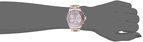 -. Feature : 24 hour, date and day of the week subdials / Pink dial with silver tone and white hands and hour markers; luminous; stainless steel bezel encrusted with pink Swarovski crystals; flame fusion crystal; stainless steel case and bracelet with pink resin center links / Swiss-quartz movement / Case diameter: 39mm / Water resistant to 330 feet