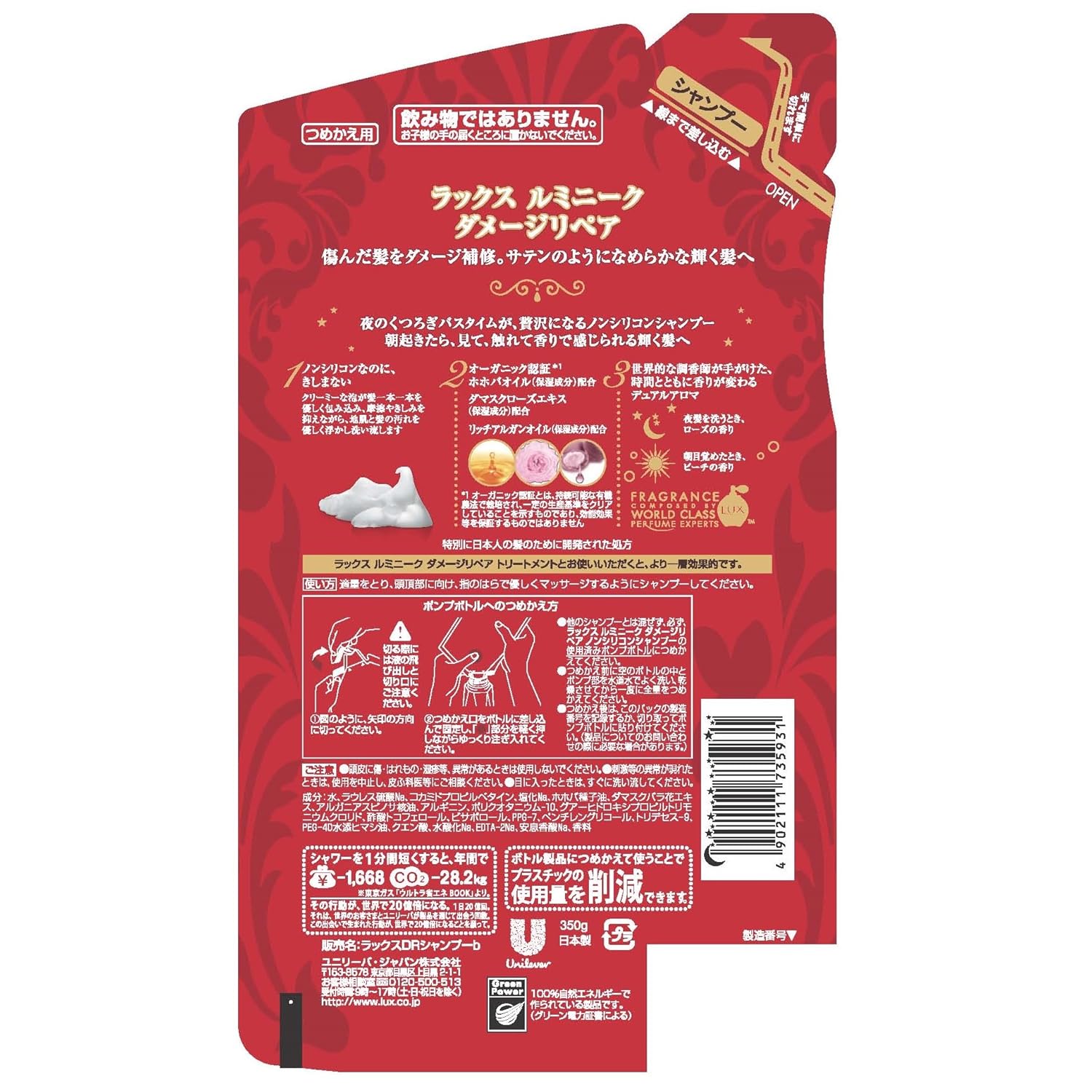 極上のクリーミー泡がダメージの原因となる摩擦やきしみをおさえ、優美なアロマで包みこむ。素髪へ導き、芯から補修し、サテンの様になめらかで、内から輝き放つ髪をもたらすリッチな贅沢ケア。優美で魅力的なアロマの香り。