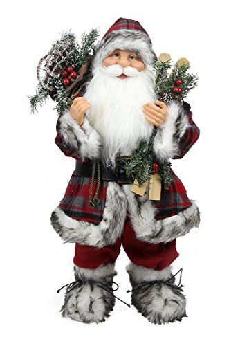 Northlight Alpine Chic Standing Santa Claus with Frosted Pine Snowshoes and Skis Christmas Figure, 16"