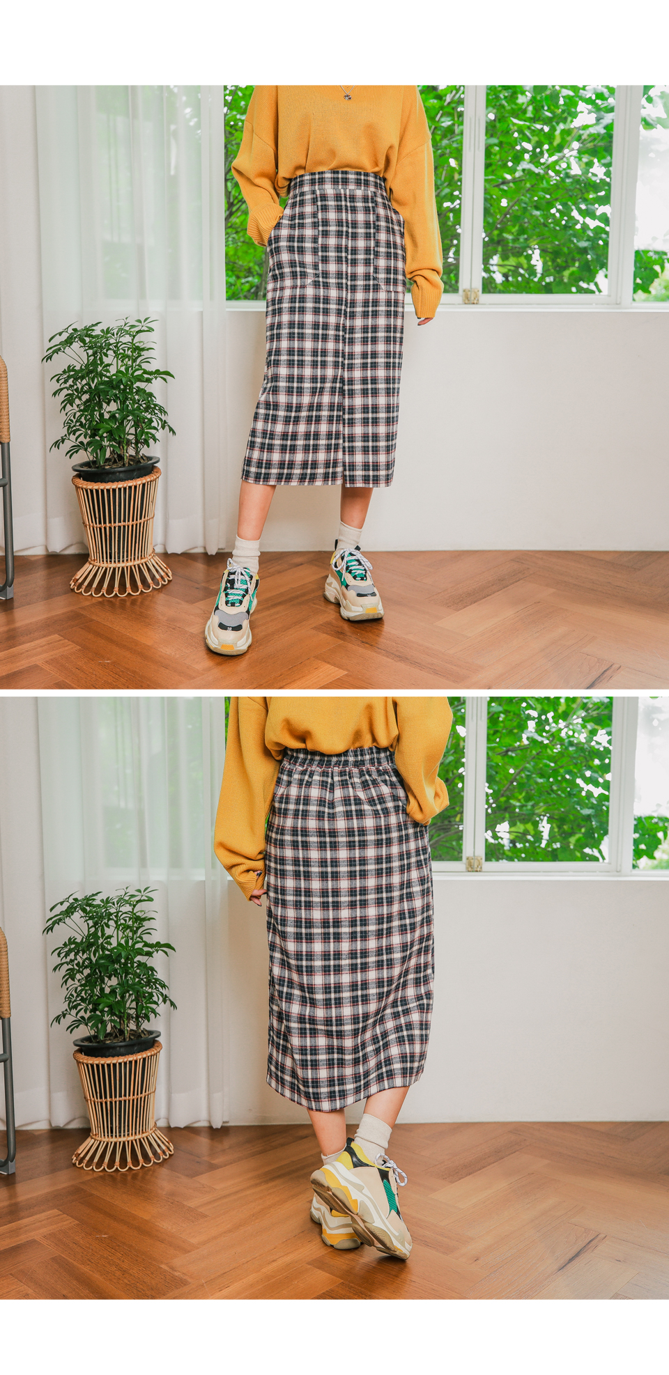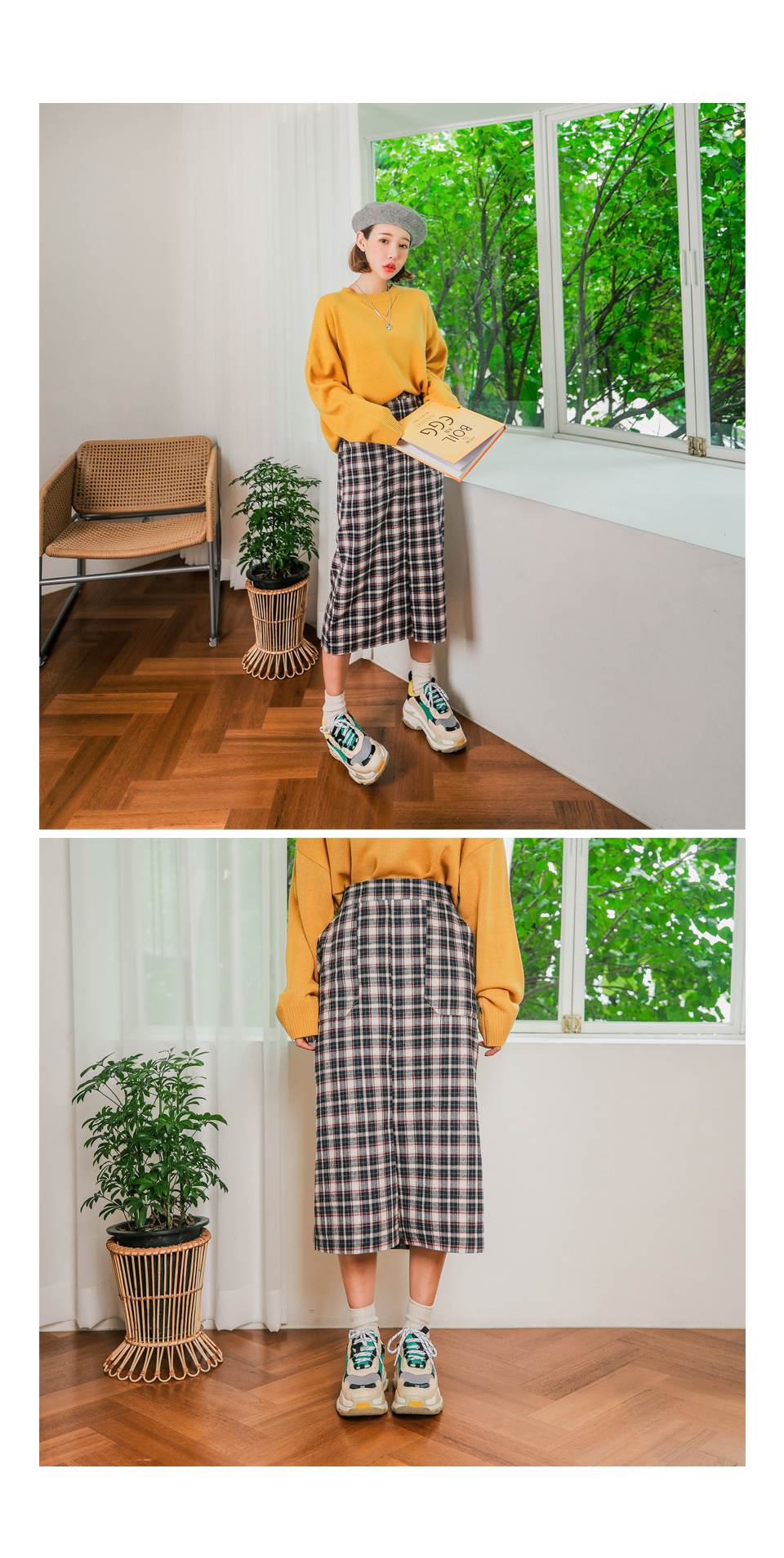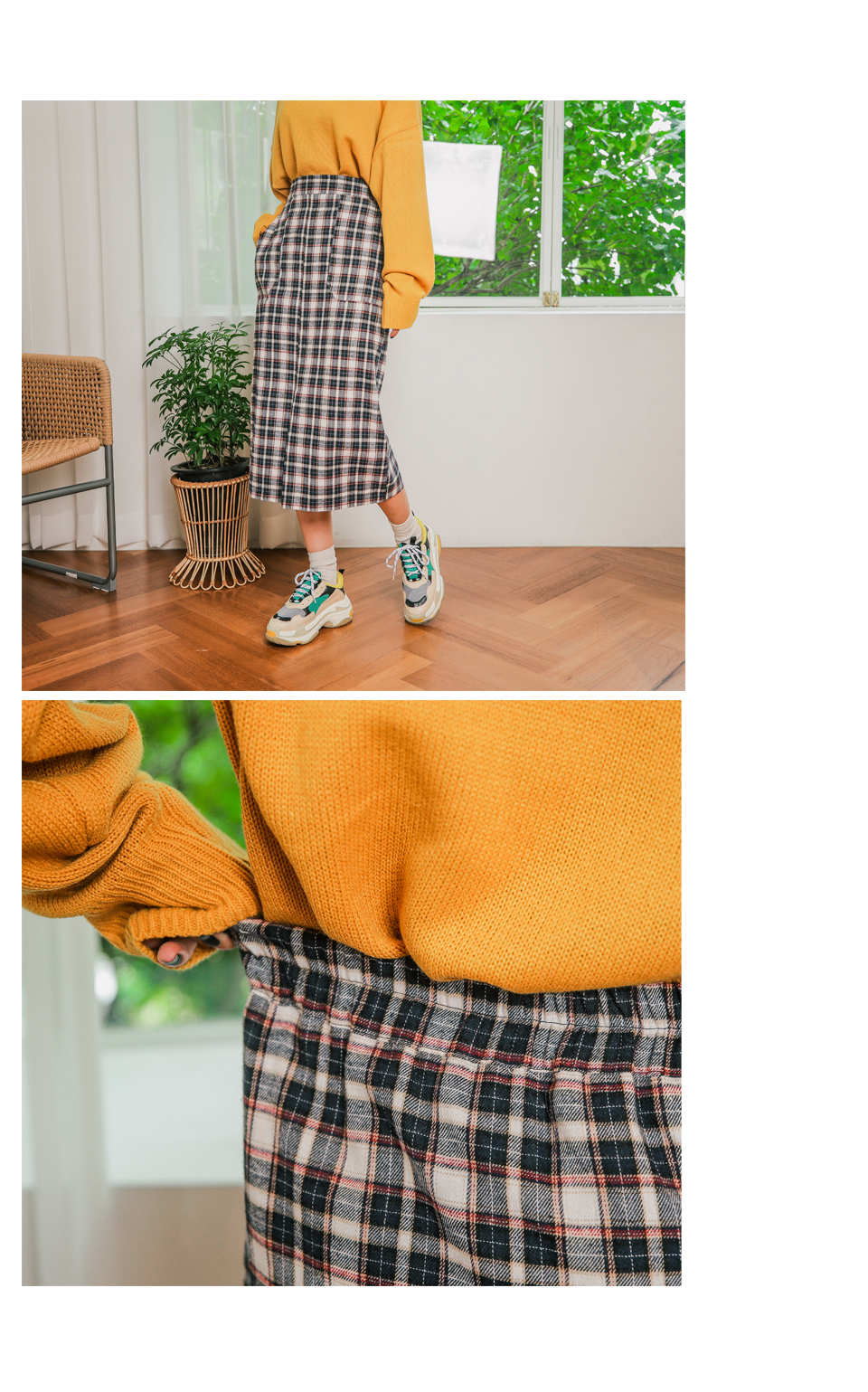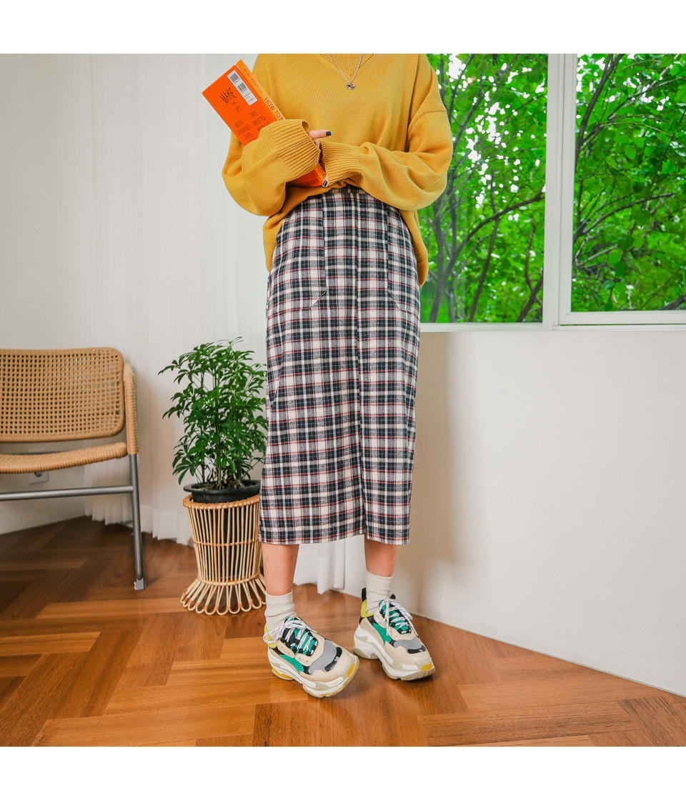 무릎을 넘는 기장감으로 체형커버에도 좋은 러블리 체크 스커트!