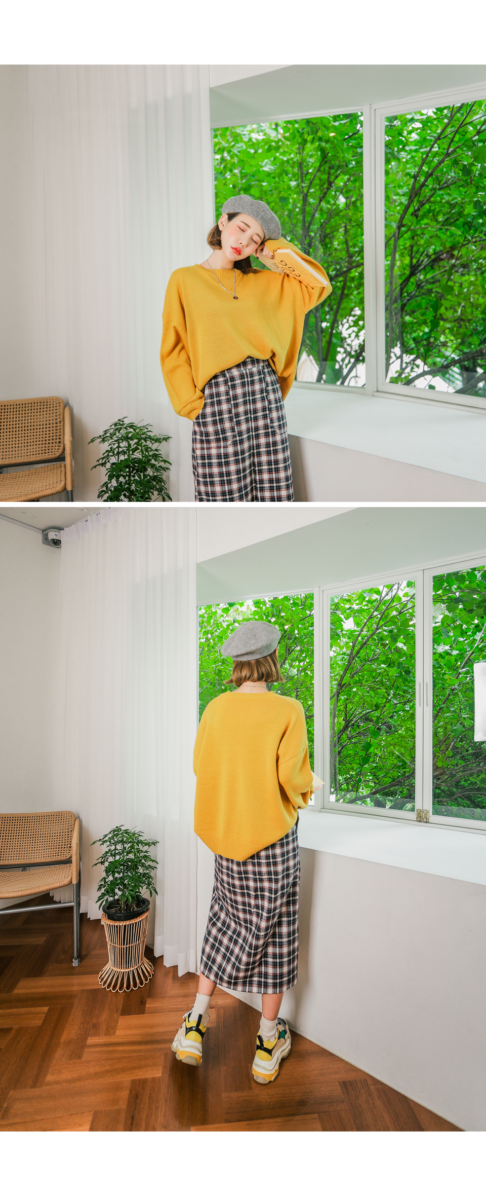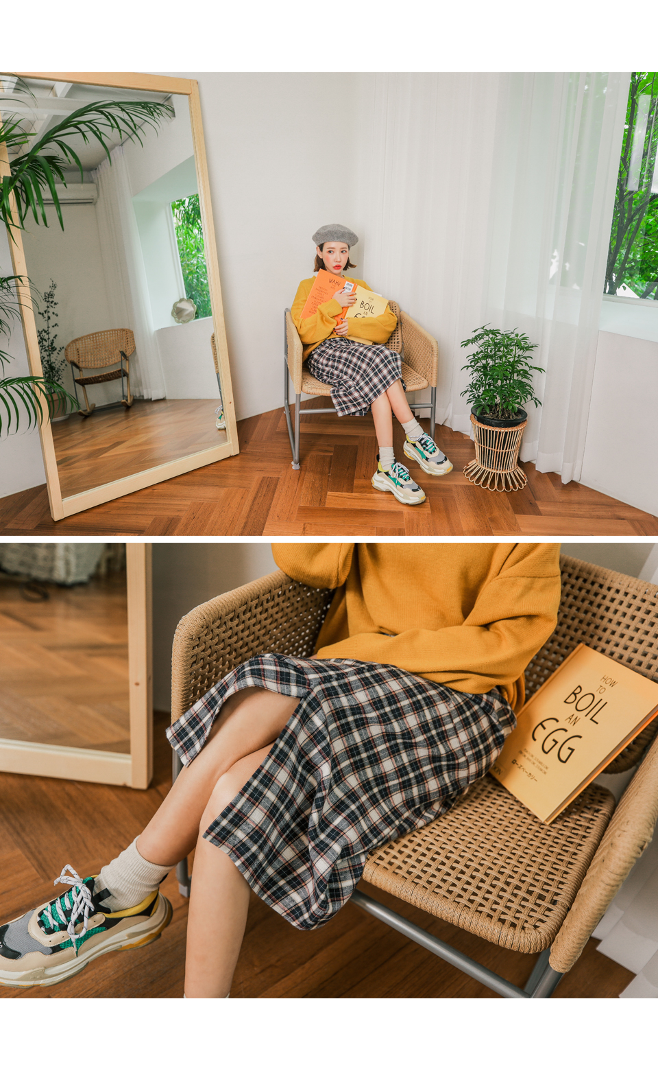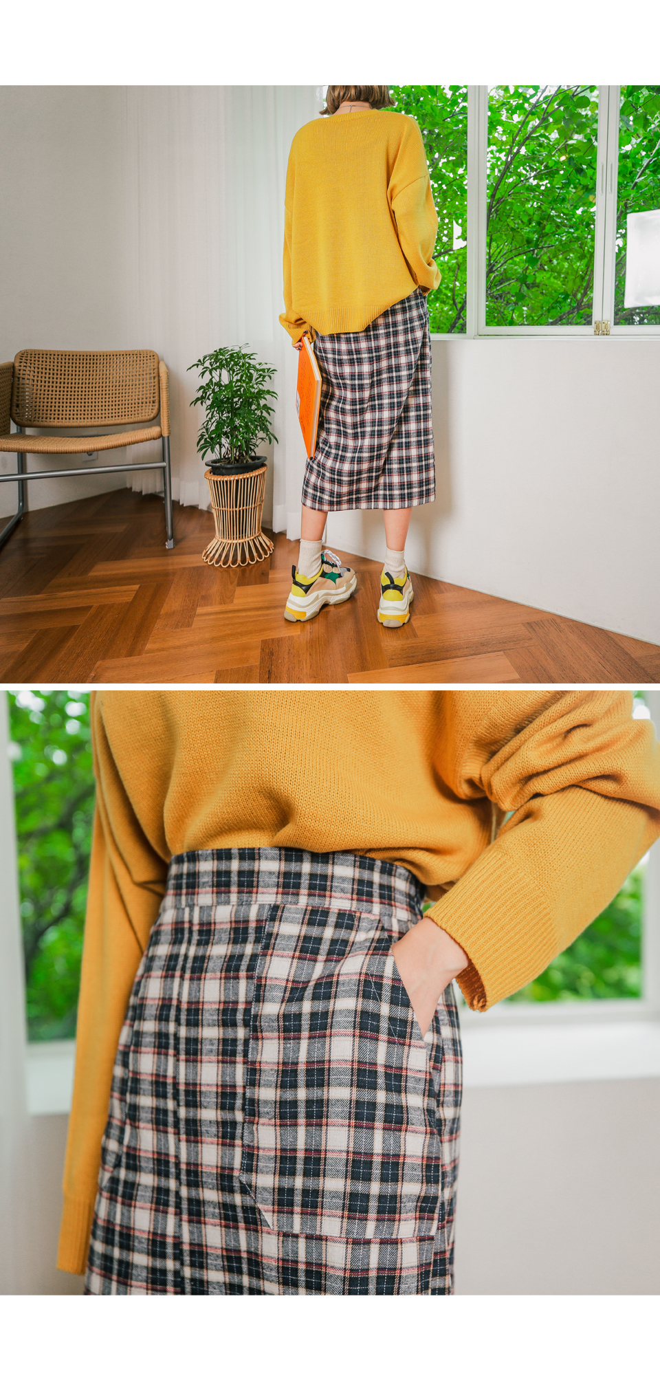 무릎을 넘는 기장감으로 체형커버에도 좋은 러블리 체크 스커트!