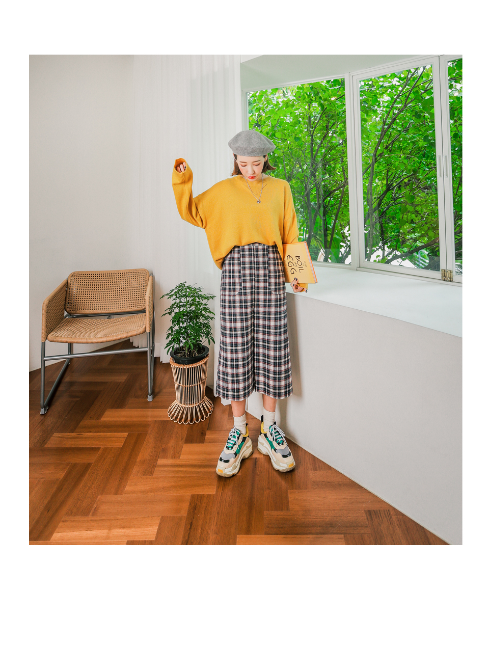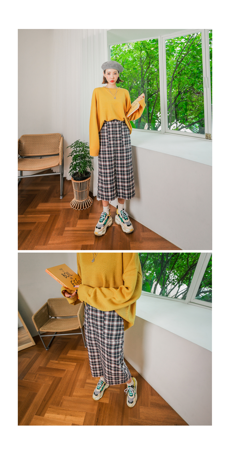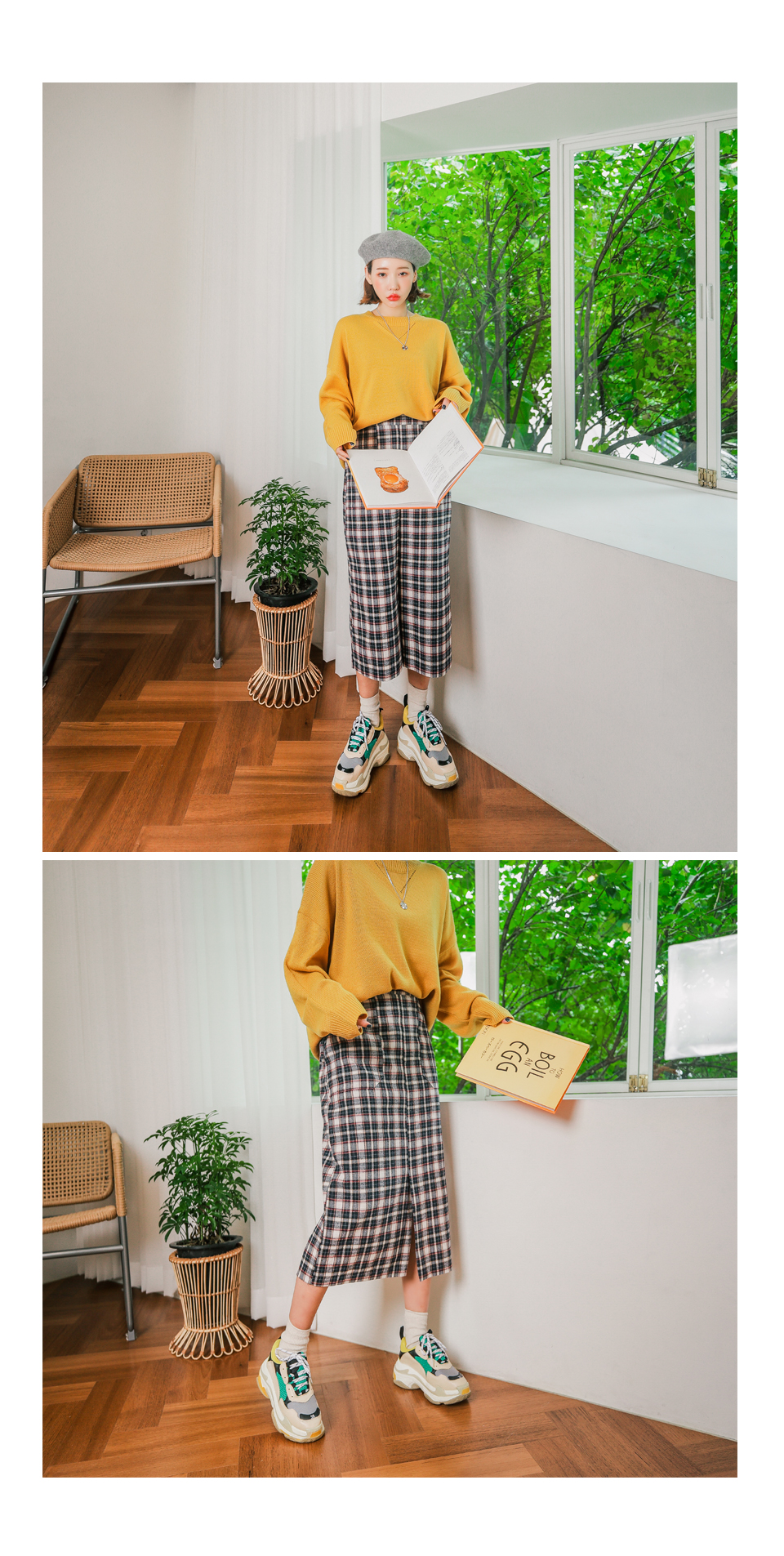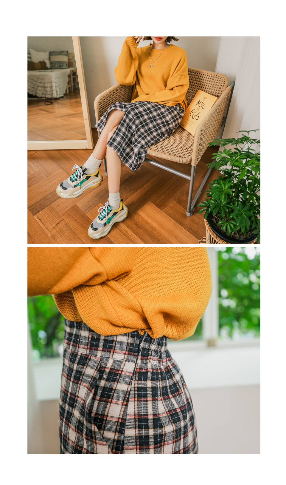 무릎을 넘는 기장감으로 체형커버에도 좋은 러블리 체크 스커트!