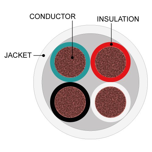 18 Gauge 25ft 4 Conductor Bare Unshielded Cable Wire with Red White Black and Green