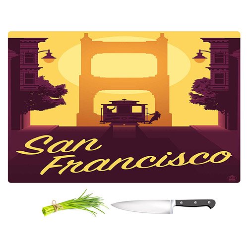 DiaNoche Designs CB-LanternPressSanFranciscoCableCar2 Lantern Press San Francisco Cable Car Cutting Boards from, Large 15" x 11"
