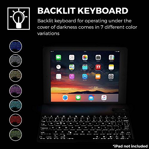 BEST SELLING BACKLIT BLUETOOTH KEYBOARD WITH 15 SHORTCUT KEYS - wireless Bluetooth 3.0 iPad connection so you don't need cables. Scissor cut keys provide typing experience just like on laptop. 7 LED backlight key colors with varying brightness intensity. 15 hotkeys make it easy to search, switch language, change volume on i-Pad, etc.