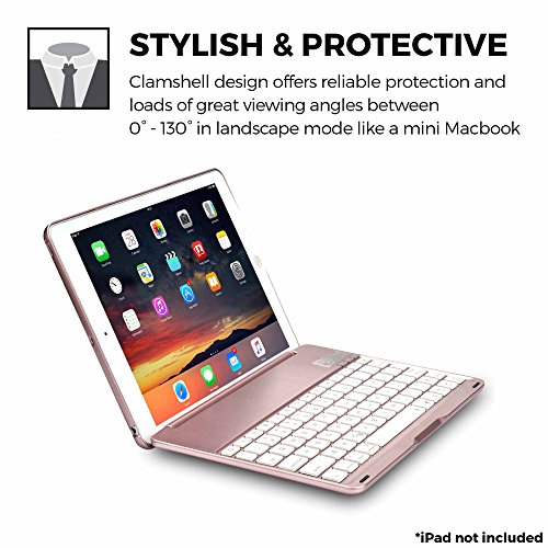 HIGH QUALITY, STURDY PROTECTION WITH SLEEP WAKE COVER - protect and store your device while also giving your iPad the typing functionality it deserves. The clamshell clamcase design looks like Macbook's little brother. Provides up to 120 degree screen viewing angle. iPad cover comes with Sleep/Wake functionality that puts your i-Pad to bed when closing screen.