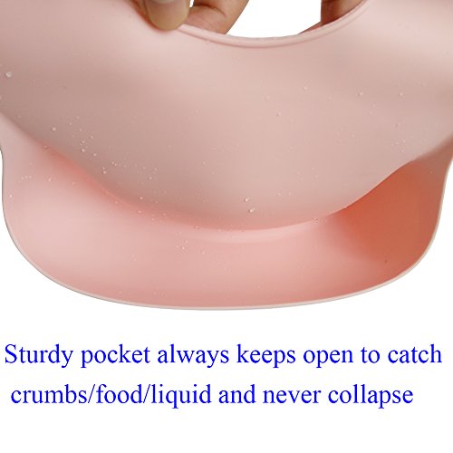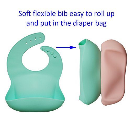 Waterproof Silicone Bib with Food Catcher Flexible Baby Bibs for Feeding Stain Resistance Easy Clean Moldproof Anti Bacteria Pack of 2 (Pink+Cyan)