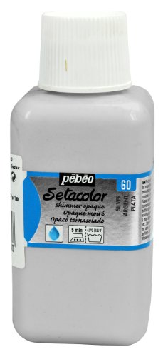Setacolor opaque is available in 40 colors in 45 ml (15 are shimmer), 24 colors are available in 250 ml (8 are shimmer), and 15 colors are available in 1 liter, (3 are shimmer)