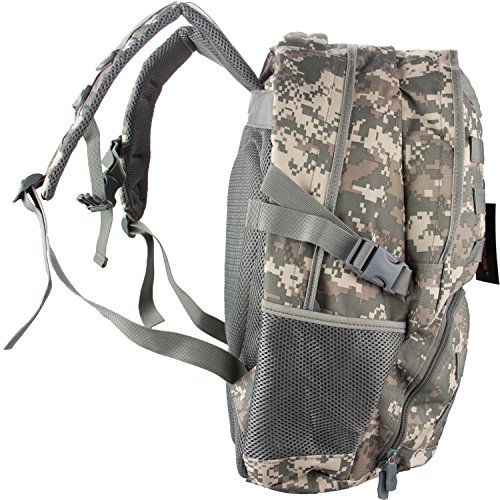 [Description] 5 SEPARATE COMPARMENTS with even more interior organization pockets means this tactical bag is easy to organize all your gear. PARACORD ZIPPER PULLS. Keep quiet with silent paracord zipper pulls on heavy duty zippers built to tough standards. MADE FROM HEAVY DUTY 600D WATERPROOF MATERIAL This military backpack is built to tough standards to take you where your mission demands. Size: (H)* (W)* (L) (18.9*11.8*9.8inch); Volume: 40L.---- Breathable mesh backing for comfort especially in hot weather.