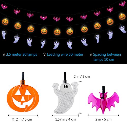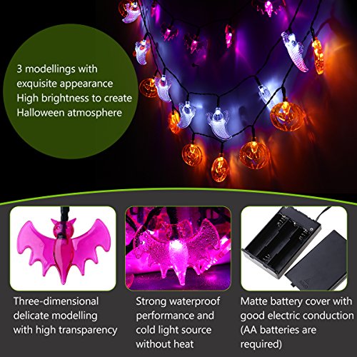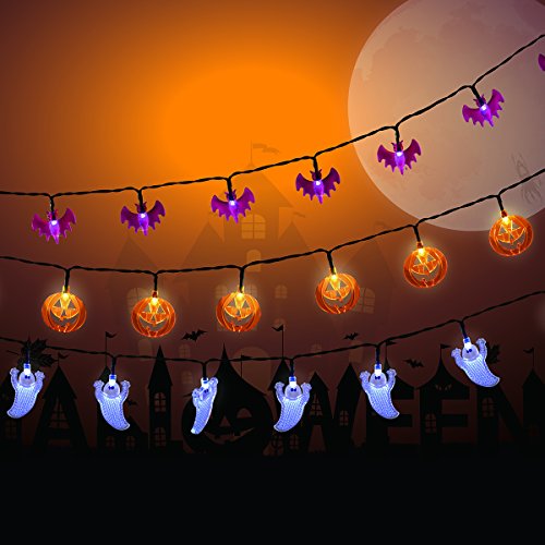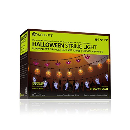 -. Title : YUNLIGHTS Halloween String Lights, Set of 3 Strings with 30 LED Lights Each - White Ghosts, Orange Jack O'Lanterns, Purple Bats