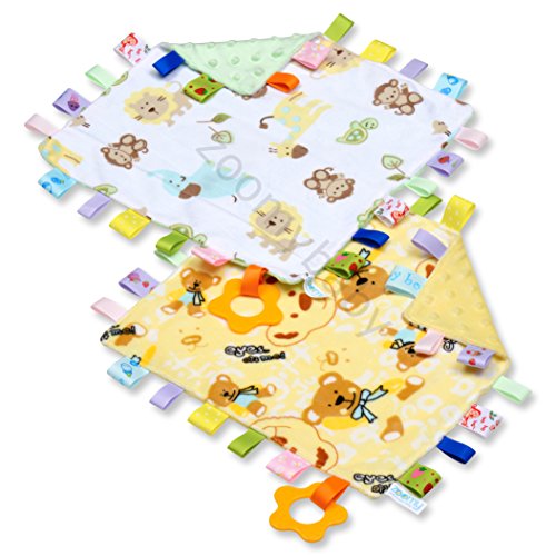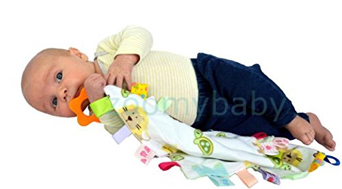Crafted using soft, durable fabric, our soothing sensory blankets offer bright colors, chewable ribbons, and a unique toy grip so they can roll, play, chew, and find comfort while their little teeth come in. Great for helping to reduce drool, keep clothes cleaner, and to capture your baby's attention, our pack of teething toys are just the right security blanket your babies need.