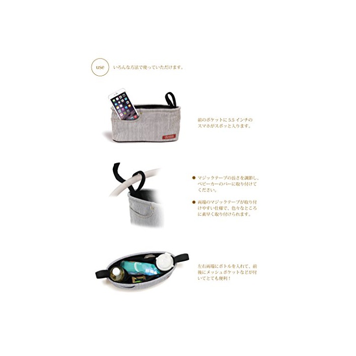 매직 테이프에 간단 설치!유모차용의 미니 백입니다.베이비의 마음에 드는 장난감이나 물통,과자 등을 넣고 즐겁게 외출에 옵니다♪