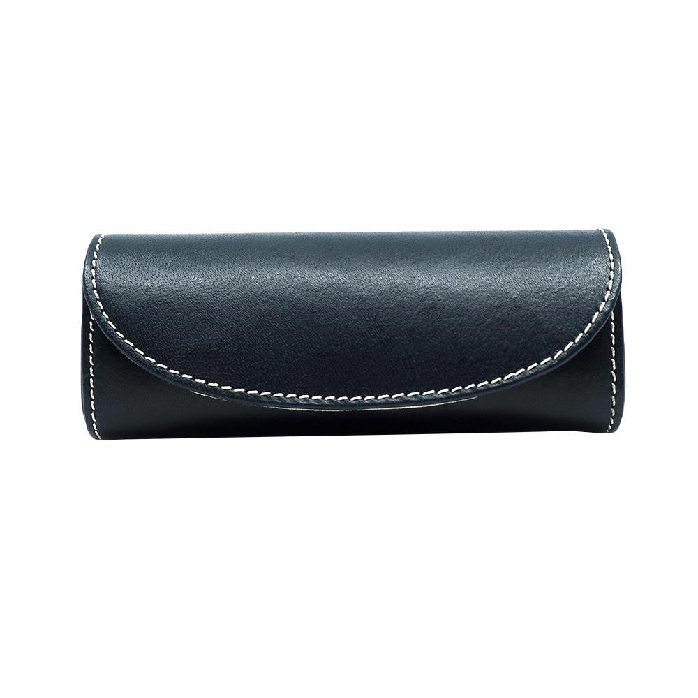 | 硬めの芯材に革を貼りつけたシンプルなグラスケース。 |