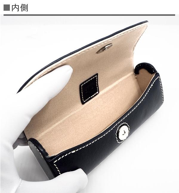 | 芯材に革を貼りつけたグラスケース(眼鏡ケース)。内側背面のクッション材がレンズをしっかり守ります。マグネット式で開閉も簡単。外側にはフィレンツェのタンナー・IL PONTE社のフルタンニンレザー、内側にはベージュのコットンを合わせました。 |