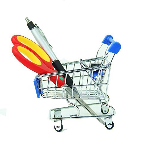 Rainbowlight Mini Novelty Shopping Cart Cute Carriage Pen Holder Pencil Organizer Box Blue
