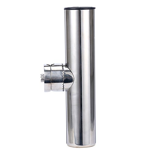 -. Feature : Can be mounted to vertical or horizontal rails - Adjustable for rails 22.2mm (7/8") to 25.4mm (1") out diam / Rubber insert to protect your fishing rod from any wear against the stainless surface / Rod holder can be adjusted to 20 different angles when mounted; Rod holder rotates and locks every 180 degress - Allowing essentially any / Easy to install, mounting bracket includes bolts / Set screws secure rod holder in place on pipe or tube