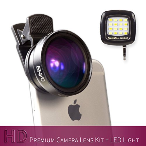 -. Title : ENVO Premium iPhone, iPad & iPod Camera Lens Kit + LED Flash Light for iPhone 6/6s/6s Plus/5s/5c/4s - Professional Grade Cell Phone & Tablet Lens (0.45x Wide Angle Lens and 12.5x Macro Lens)
