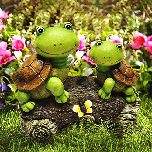 LA JOLIE MUSE Garden Statue Figures Turtles on a Log, 9 Inch Large Resin, Frog Style,Patio Lawn yard Indoor Outdoor Decorations,Mothers Day Gift