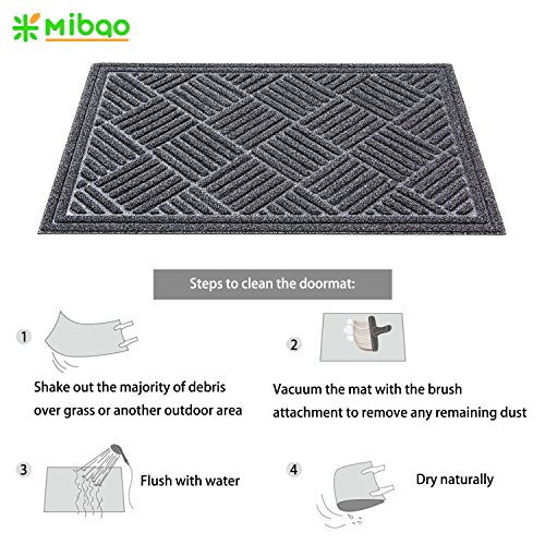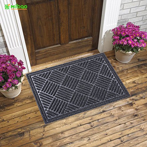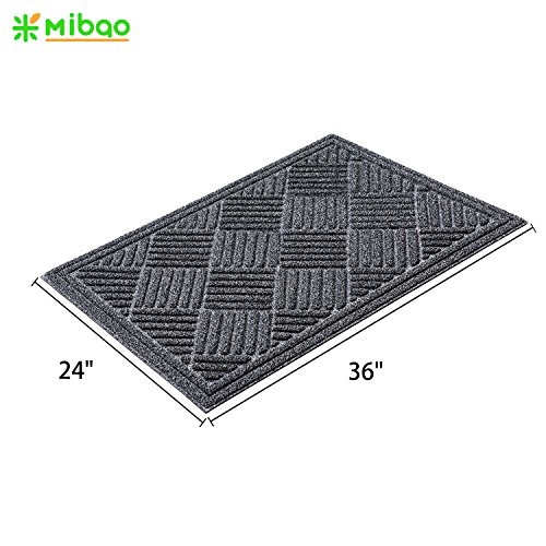 Mibao Shoes Scraper Entrance Rug Durable Outside Doormat Waterproof Patio Foor Mat for Front Door Low Profile, 24" x 36" Gray