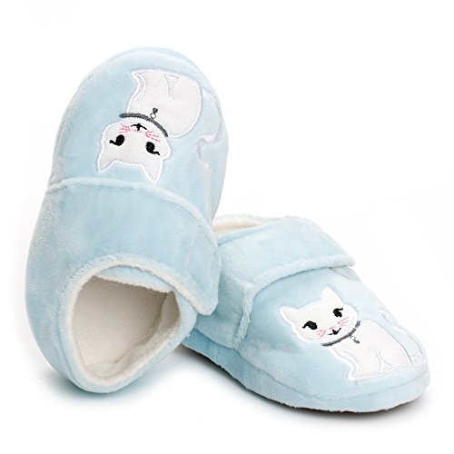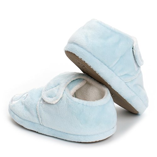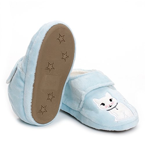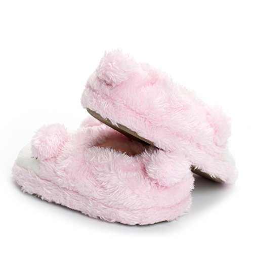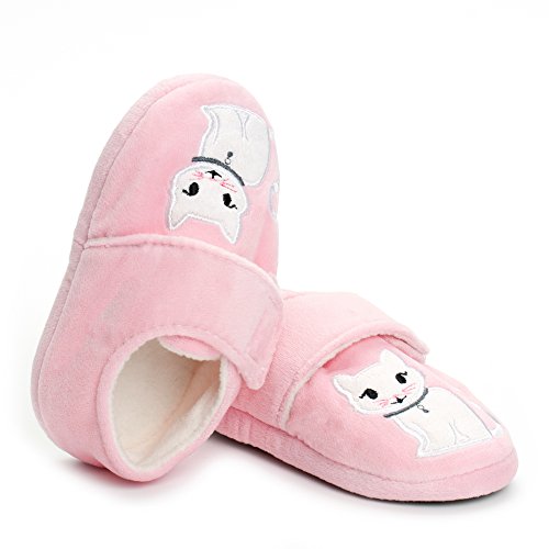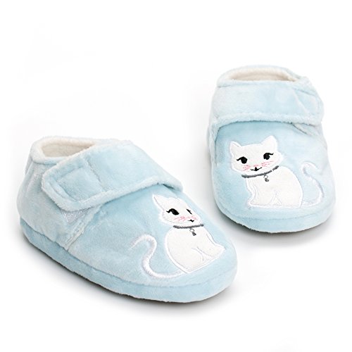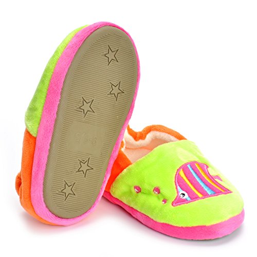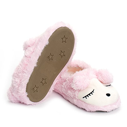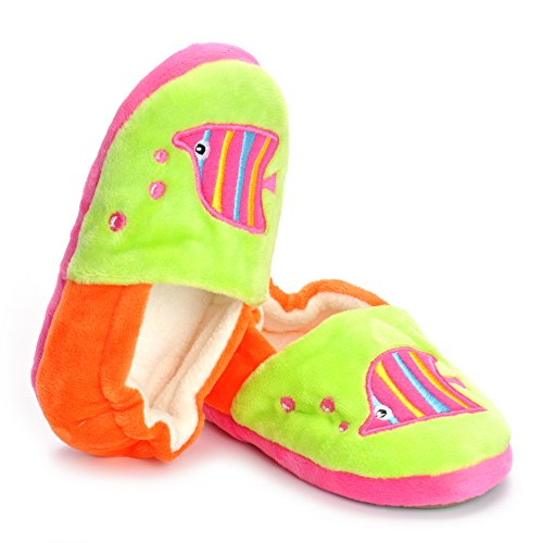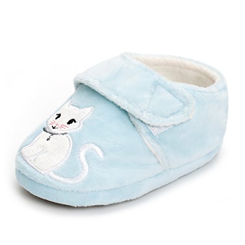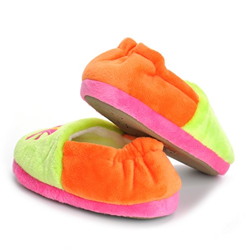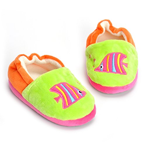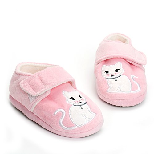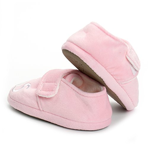 Binding : Apparel Product Description Estamico toddler girls slippers are made with solid rubber sole and warm plush linen. Nice designer upper. These adorable cartoon slippers are very Soft Anti-slip, inner sole structure specially designed to protect the natural infant/Toddler's foot. As babies feet are different,below size is for your reference ONLY, please choose the size by Sole Length Size--------Inner Sole Length US 5-6 M----5.51 inches/14 cm (Sole Sign: S/5-6 ) US 7-8 M----6.29 inches/16 cm (Sole Sign: M/7-8 ) US 9-10 M---6.69 inches/17 cm (Sole Sign: L/9-10 ) Notes: 1. Please allow 1-3CM differs due to manual measurement 2. Real color may slightly different from pictures due to computer screen's resolution, brightness, contrast etc. Hope understanding. Have a nice shopping day!