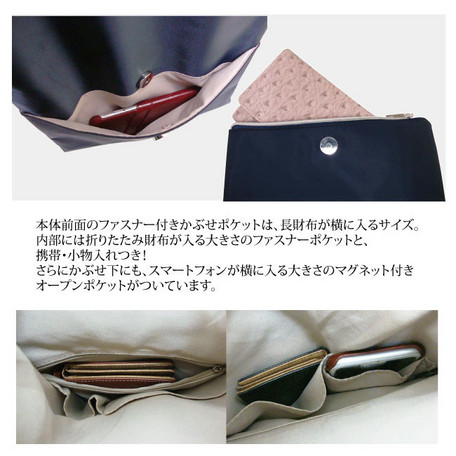 ・ファスナー付きかぶせポケット内部にファスナーポケット、