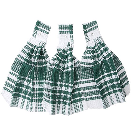 - SNAP TOP LOOP- Each has a top loop with a snap for securing the towel around a belt loop, refrigerator handle, oven door, cabinet pull and more, putting an absorbent cloth at your fingertips.
