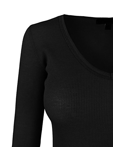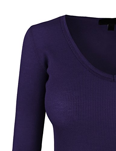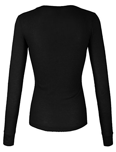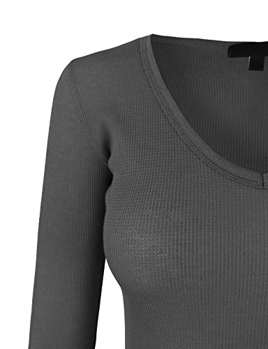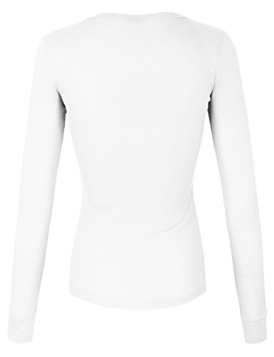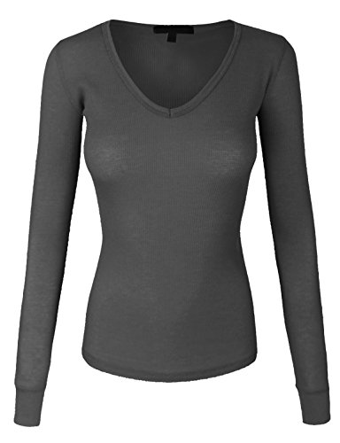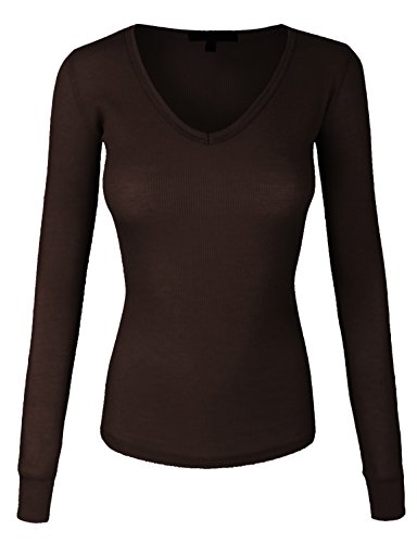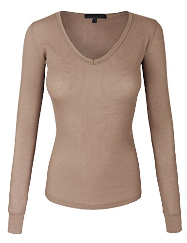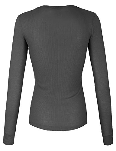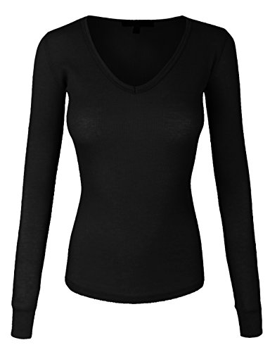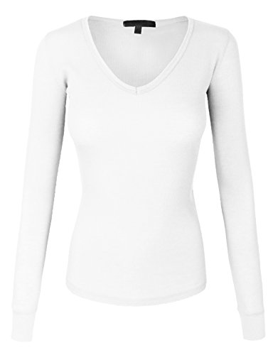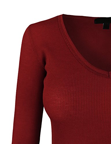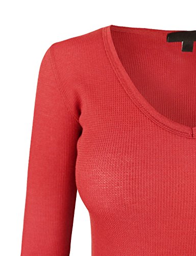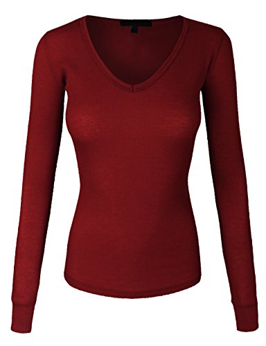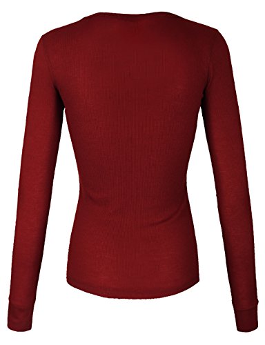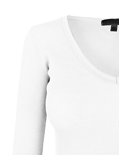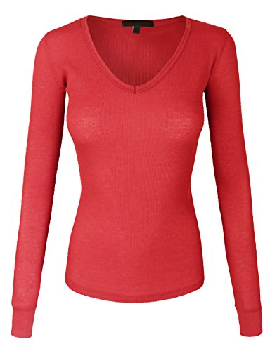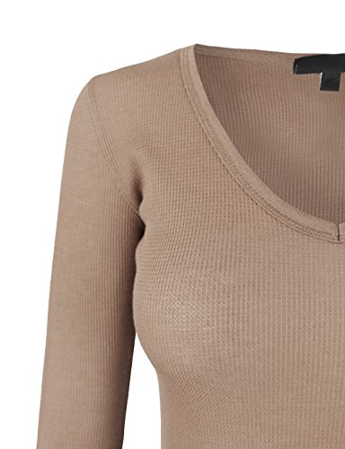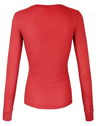 | makeitmint Women's Basic Solid V-Neck Long Sleeve Thermal Waffle T-shirt Top |