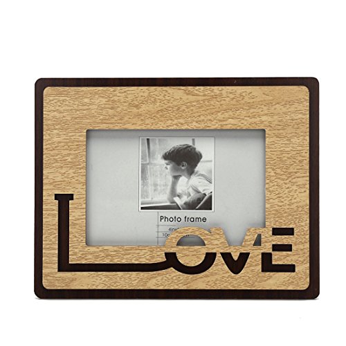 4x6 Inches Wood Desktop Picture Frame with Glass Front (4x6 "LOVE" Style 2)