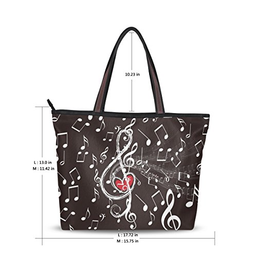 Women Large Tote Top Handle Shoulder Bags Music Notes Ladies Handbag