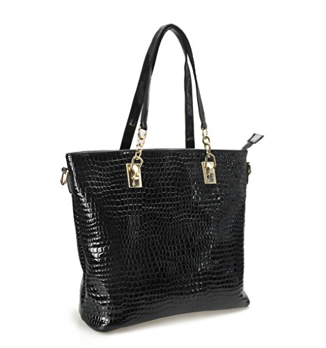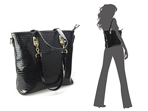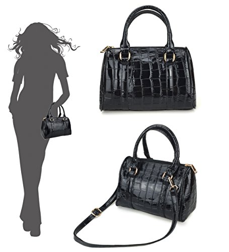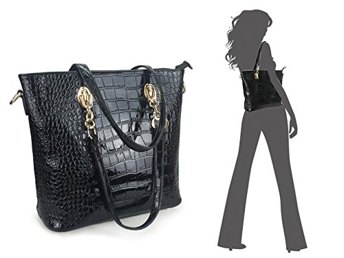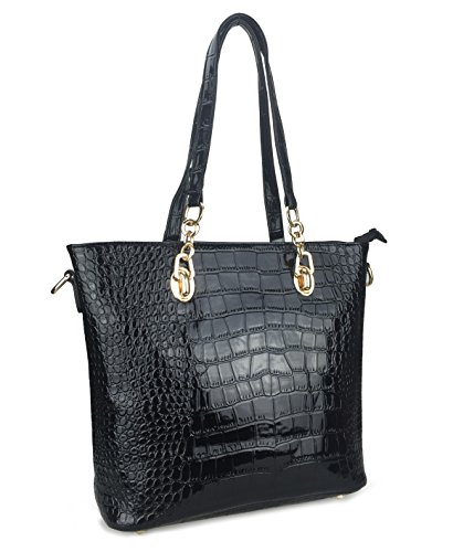 Box-shaped bag ¨C Top zip closure with large capacity for all your stuff, internal slip pocket 10.6x5.1x7.1inch Handle Drop 4.7inch The Tote Bag includes a zippered closure that opens to reveal fabric lining, two open top slip pockets and one zippered pocket provide plenty of space for your smaller items or cell phone, 11.8x5.1x11.8 Handle Drop 7.9inch 4 gold-tone studs on the bottom will help add traction and keep the travel satchel above the elements should you ever need to set it down while you're out and about. Crossbody/messenger bag has an adjustable, removable chain-and-leatherette shoulder strap, the secure rear outside zipper pocket is perfect for the things you need most often. 11x3.9x7.5inch Adjustable Strap 50inch Pouch ¨C Portable to carry your cellphone and accessories. 6.3x2.8x2.8inch Cute wallet for holding your ID, credit cards, money and some change in the side pocket, closure is zip-around. 7.7x1x3.9inch Keys case made of patent leather, has snaps closure, 6 individual clips, 2 front snaps to safely secure contents. 4.3x0.4x2.4inch Interior ¨C 1 zipper pocket 2 comparments 2 slip pockets. This Hoxis Convertible Shoulder Bag is a great everyday bag. Sure to turn heads wherever you go, this Bag is perfect for the new season. the bag is made of top grain leather and finely stitched to presents its excellent workmanship. Lined internally with quality fabric, the bag is suitable for both indoor and outdoor activities. 0