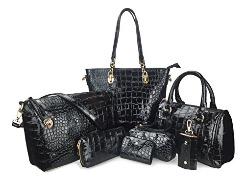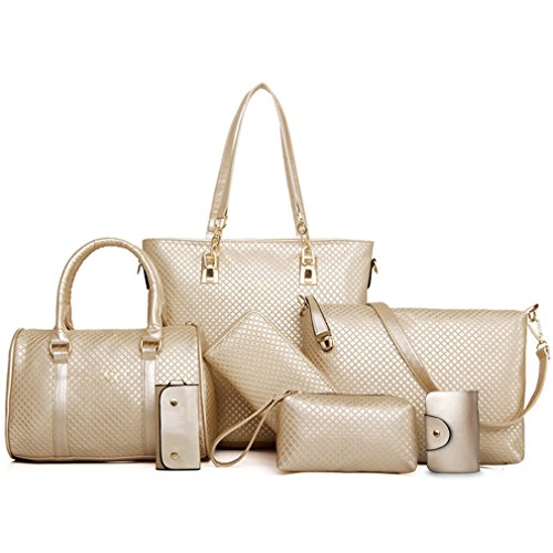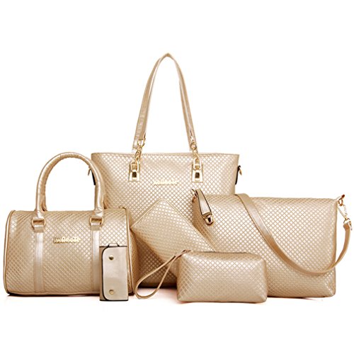 Product Description The 6 piece Bags is a large stylish purse at a great price, made of high-end leatherette, and gold-toned hardware.