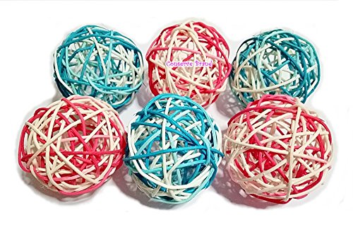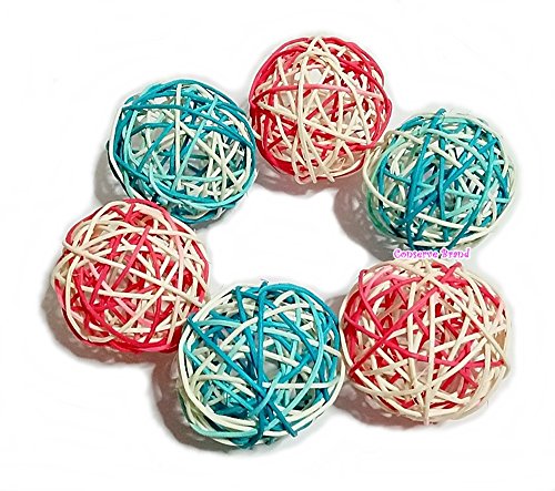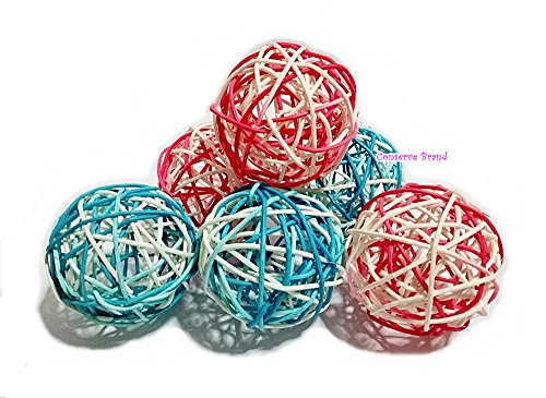 Christmas Gift : Natural Medium Wicker Balls With Two Tone Color Pink & Light Blue For DIY Vase And Bowl Filler Ornament, Decorative Spheres Balls Perfect For Decoration And Party 3-3.5 inch 6 Pcs