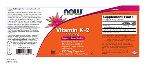 Product DescriptionNOW Vitamin K-2 100 mcg,250 Veg Capsules0