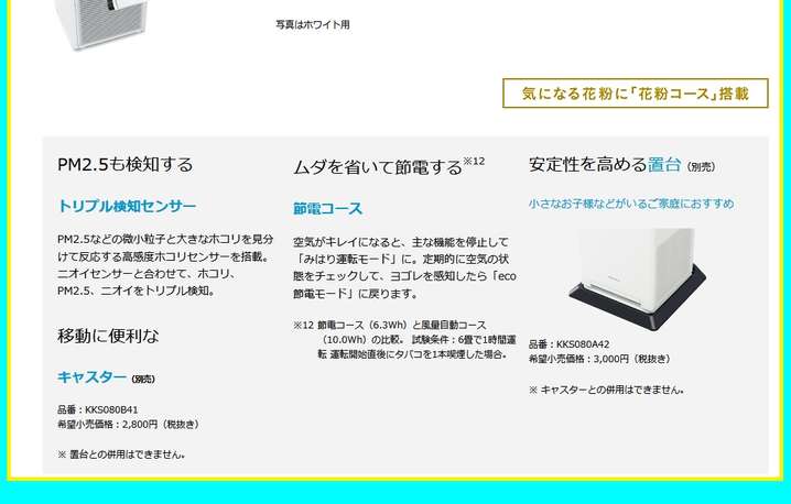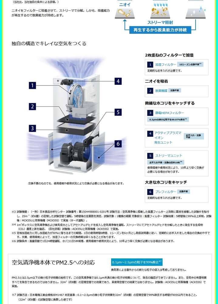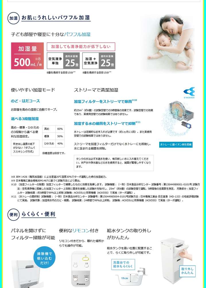 ●空気清浄 適用床面積の目安・空気清浄運転時:~25畳(~41m2)8畳を清浄する目安11分・加湿空気清浄運転時:~25畳(~41m2)8畳を清浄する目安11分